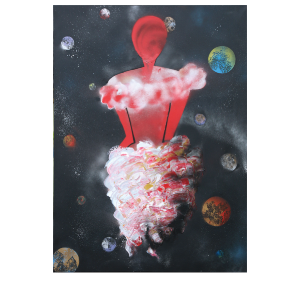 Manipuler les bombes de peinture, flouter les formes et utiliser plusieurs techniques pour représenter des motifs ont fait émerger cet univers galactique.