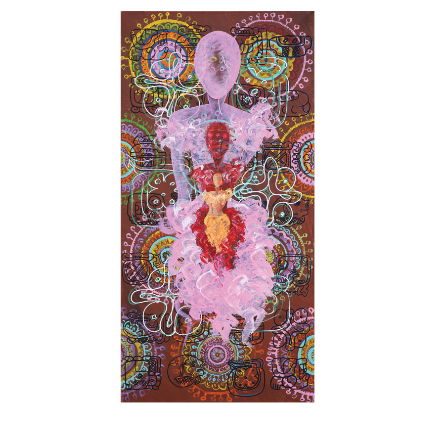 S’entremêlent des glyphes Mayas aux symboles et cercles indonésiens pour évoquer la Vie, l’Amour et la Famille.